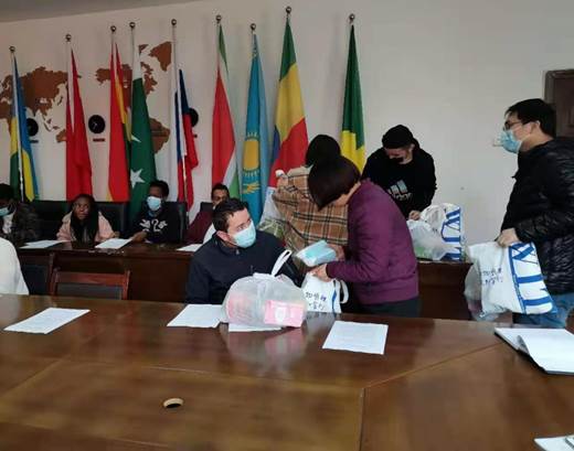 为了进一步关怀在校留学生的假期生活并做好寒假期间的疫情防控,学院领导为留学生提前准备好新年慰问和防疫物资大礼包,以及足球、篮球等运动装备,并提醒学生在假期可以进行适度户外锻炼。