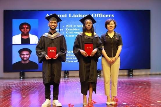 典礼上,学院温情邀请了今年刚刚毕业的留学生参礼。他们因疫情的原因,错过了属于他们的开学典礼。在留学生毕业即将离开母校之际,学院让大家补回开学典礼场景。同时学院在本届毕业生中选聘了两名留学生校友联络员,郑丹凤为他们颁发聘书,并希望校友联络员能够做联结校友情感的桥梁与纽带,做母校精神的传承者。