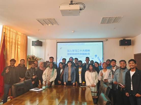 本网讯 (通讯员 陈小红)为深入学习宣传党的二十大精神,引导留学生读懂中国共产党、读懂中国教育,12月7日下午,best365网页版登录直属党支部副书记(主持工作)杜春丽以“学习党的二十大精神,理解新时代中国教育”为题面向留学生代表上了一堂生动的文化宣讲课。学院全体教职工参加了此次活动。