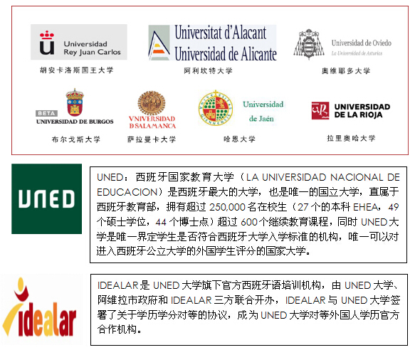 2、名校录取 UNED国立大学联袂西班牙顶级公立名校联合招生,合格学生直升名校。